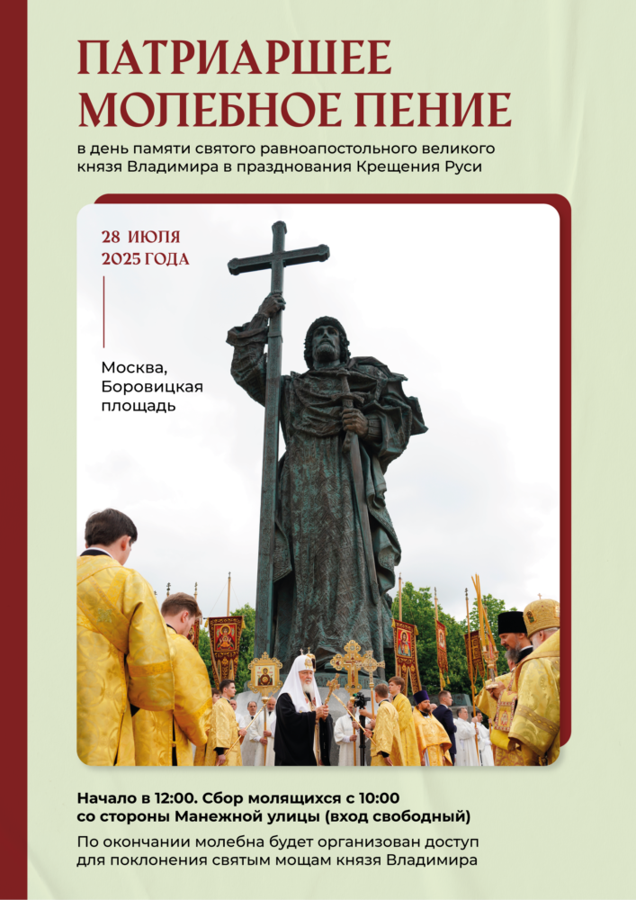 По благословению Святейшего Патриарха Московского и всея Руси Кирилла 7 сентября 2025 года, в Неделю 13-ю по Пятидесятнице, день празднования Собора Московских святых, состоится общемосковский крестный ход от кафедрального соборного Храма Христа Спасителя г. Москвы до Новодевичьего ставропигиального женского монастыря.